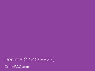 Decimal 154698823 Color is a normal purple color and the nearest color is Purpureus #9a4eae. Hex code #8f419f and RGB value is rgb(143,65,159). In RGB color space, this color is composed of 56% red, 25% green, 62% blue, In CMYK color space, this color is composed of 10% cyan, 59% magenta, 0% yellow , 38% black , In HSL color space, this color has a hue angle of 290° , 42% saturation and 44% lightness.