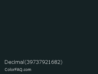 Decimal 39737921682 Color is a very dark cyan color and the nearest color is Dark Jungle Green #1a2421. Hex code #152224 and RGB value is rgb(21,34,36). In RGB color space, this color is composed of 8% red, 13% green, 14% blue, In CMYK color space, this color is composed of 42% cyan, 6% magenta, 0% yellow , 86% black , In HSL color space, this color has a hue angle of 188° , 26% saturation and 11% lightness.