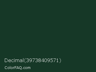 Decimal 39738409571 Color is a very dark green color and the nearest color is Phthalo Green #123524. Hex code #163827 and RGB value is rgb(22,56,39). In RGB color space, this color is composed of 9% red, 22% green, 15% blue, In CMYK color space, this color is composed of 61% cyan, 0% magenta, 30% yellow , 78% black , In HSL color space, this color has a hue angle of 150° , 44% saturation and 15% lightness.