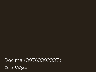 Decimal 39763392337 Color is a very dark orange color and the nearest color is Oil #281e15. Hex code #282017 and RGB value is rgb(40,32,23). In RGB color space, this color is composed of 16% red, 13% green, 9% blue, In CMYK color space, this color is composed of 0% cyan, 20% magenta, 43% yellow , 84% black , In HSL color space, this color has a hue angle of 32° , 27% saturation and 12% lightness.