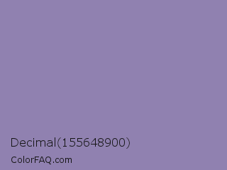 Decimal 155648900 Color is a normal indigo color and the nearest color is Lavender Purple #967bb6. Hex code #9081b0 and RGB value is rgb(144,129,176). In RGB color space, this color is composed of 56% red, 51% green, 69% blue, In CMYK color space, this color is composed of 18% cyan, 27% magenta, 0% yellow , 31% black , In HSL color space, this color has a hue angle of 259° , 23% saturation and 60% lightness.