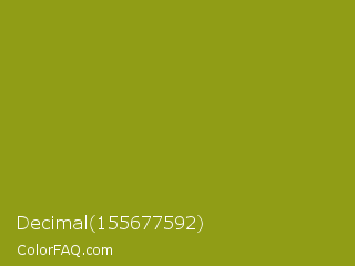 Decimal 155677592 Color is a normal yellow color and the nearest color is Citron #9fa91f. Hex code #909d16 and RGB value is rgb(144,157,22). In RGB color space, this color is composed of 56% red, 62% green, 9% blue, In CMYK color space, this color is composed of 8% cyan, 0% magenta, 86% yellow , 38% black , In HSL color space, this color has a hue angle of 66° , 75% saturation and 35% lightness.