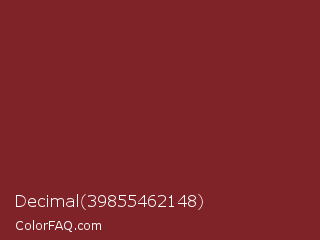 Decimal 39855462148 Color is a normal red color and the nearest color is Antique Ruby #841b2d. Hex code #802328 and RGB value is rgb(128,35,40). In RGB color space, this color is composed of 50% red, 14% green, 16% blue, In CMYK color space, this color is composed of 0% cyan, 73% magenta, 69% yellow , 50% black , In HSL color space, this color has a hue angle of 357° , 57% saturation and 32% lightness.