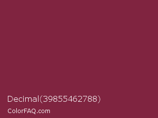 Decimal 39855462788 Color is a normal rose color and the nearest color is Pansy Purple #78184a. Hex code #802440 and RGB value is rgb(128,36,64). In RGB color space, this color is composed of 50% red, 14% green, 25% blue, In CMYK color space, this color is composed of 0% cyan, 72% magenta, 50% yellow , 50% black , In HSL color space, this color has a hue angle of 342° , 56% saturation and 32% lightness.