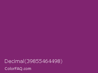 Decimal 39855464498 Color is a normal magenta color and the nearest color is Midnight #702670. Hex code #802470 and RGB value is rgb(128,36,112). In RGB color space, this color is composed of 50% red, 14% green, 44% blue, In CMYK color space, this color is composed of 0% cyan, 72% magenta, 13% yellow , 50% black , In HSL color space, this color has a hue angle of 310° , 56% saturation and 32% lightness.