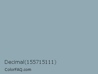 Decimal 155715111 Color is a light blue color and the nearest color is Pewter Blue #8ba8b7. Hex code #90a9b3 and RGB value is rgb(144,169,179). In RGB color space, this color is composed of 56% red, 66% green, 70% blue, In CMYK color space, this color is composed of 20% cyan, 6% magenta, 0% yellow , 30% black , In HSL color space, this color has a hue angle of 197° , 19% saturation and 63% lightness.