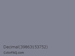 Decimal 39863153752 Color is a normal blue color and the nearest color is Roman Silver #838996. Hex code #828392 and RGB value is rgb(130,131,146). In RGB color space, this color is composed of 51% red, 51% green, 57% blue, In CMYK color space, this color is composed of 11% cyan, 10% magenta, 0% yellow , 43% black , In HSL color space, this color has a hue angle of 236° , 7% saturation and 54% lightness.