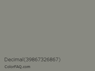 Decimal 39867326867 Color is a normal yellow color and the nearest color is Natural Gray #8b8680. Hex code #888981 and RGB value is rgb(136,137,129). In RGB color space, this color is composed of 53% red, 54% green, 51% blue, In CMYK color space, this color is composed of 1% cyan, 0% magenta, 6% yellow , 46% black , In HSL color space, this color has a hue angle of 68° , 3% saturation and 52% lightness.