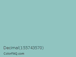 Decimal 155743570 Color is a light cyan color and the nearest color is Shadow Green #9ac2b8. Hex code #90c4c0 and RGB value is rgb(144,196,192). In RGB color space, this color is composed of 56% red, 77% green, 75% blue, In CMYK color space, this color is composed of 27% cyan, 0% magenta, 2% yellow , 23% black , In HSL color space, this color has a hue angle of 175° , 31% saturation and 67% lightness.