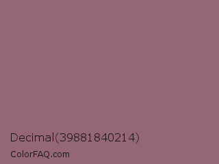 Decimal 39881840214 Color is a normal rose color and the nearest color is Mauve Taupe #915f6d. Hex code #946678 and RGB value is rgb(148,102,120). In RGB color space, this color is composed of 58% red, 40% green, 47% blue, In CMYK color space, this color is composed of 0% cyan, 31% magenta, 19% yellow , 42% black , In HSL color space, this color has a hue angle of 337° , 18% saturation and 49% lightness.