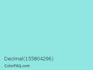 Decimal 155804296 Color is a light cyan color and the nearest color is Riptide #8be6d8. Hex code #90e6e0 and RGB value is rgb(144,230,224). In RGB color space, this color is composed of 56% red, 90% green, 88% blue, In CMYK color space, this color is composed of 37% cyan, 0% magenta, 3% yellow , 10% black , In HSL color space, this color has a hue angle of 176° , 63% saturation and 73% lightness.
