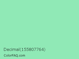 Decimal 155807764 Color is a light green color and the nearest color is Teal Deer #99e6b3. Hex code #90e9b6 and RGB value is rgb(144,233,182). In RGB color space, this color is composed of 56% red, 91% green, 71% blue, In CMYK color space, this color is composed of 38% cyan, 0% magenta, 22% yellow , 9% black , In HSL color space, this color has a hue angle of 146° , 67% saturation and 74% lightness.