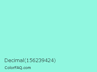 Decimal 156239424 Color is a light cyan color and the nearest color is Riptide #8be6d8. Hex code #90f7e0 and RGB value is rgb(144,247,224). In RGB color space, this color is composed of 56% red, 97% green, 88% blue, In CMYK color space, this color is composed of 42% cyan, 0% magenta, 9% yellow , 3% black , In HSL color space, this color has a hue angle of 167° , 87% saturation and 77% lightness.