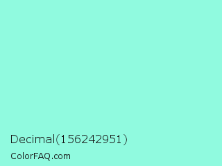 Decimal 156242951 Color is a light cyan color and the nearest color is Aquamarine #7fffd4. Hex code #90fadf and RGB value is rgb(144,250,223). In RGB color space, this color is composed of 56% red, 98% green, 87% blue, In CMYK color space, this color is composed of 42% cyan, 0% magenta, 11% yellow , 2% black , In HSL color space, this color has a hue angle of 165° , 91% saturation and 77% lightness.