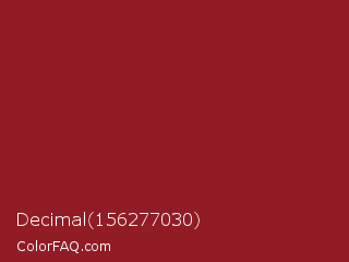 Decimal 156277030 Color is a normal red color and the nearest color is Old Brick #901e1e. Hex code #911c26 and RGB value is rgb(145,28,38). In RGB color space, this color is composed of 57% red, 11% green, 15% blue, In CMYK color space, this color is composed of 0% cyan, 81% magenta, 74% yellow , 43% black , In HSL color space, this color has a hue angle of 355° , 68% saturation and 34% lightness.