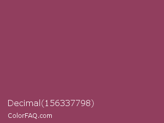 Decimal 156337798 Color is a normal rose color and the nearest color is Quinacridone Magenta #8e3a59. Hex code #913e5e and RGB value is rgb(145,62,94). In RGB color space, this color is composed of 57% red, 24% green, 37% blue, In CMYK color space, this color is composed of 0% cyan, 57% magenta, 35% yellow , 43% black , In HSL color space, this color has a hue angle of 337° , 40% saturation and 41% lightness.