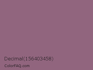 Decimal 156403458 Color is a normal magenta color and the nearest color is Strikemaster #956387. Hex code #91657e and RGB value is rgb(145,101,126). In RGB color space, this color is composed of 57% red, 40% green, 49% blue, In CMYK color space, this color is composed of 0% cyan, 30% magenta, 13% yellow , 43% black , In HSL color space, this color has a hue angle of 326° , 18% saturation and 48% lightness.