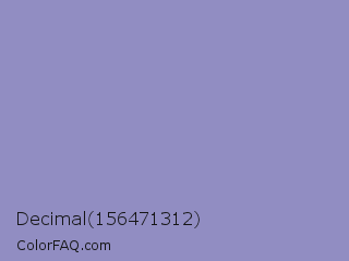 Decimal 156471312 Color is a light indigo color and the nearest color is Blue Bell Crayola #9999cc. Hex code #918dc2 and RGB value is rgb(145,141,194). In RGB color space, this color is composed of 57% red, 55% green, 76% blue, In CMYK color space, this color is composed of 25% cyan, 27% magenta, 0% yellow , 24% black , In HSL color space, this color has a hue angle of 245° , 30% saturation and 66% lightness.