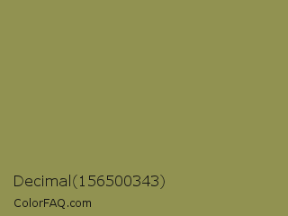Decimal 156500343 Color is a normal yellow color and the nearest color is Moss Green #8a9a5b. Hex code #919251 and RGB value is rgb(145,146,81). In RGB color space, this color is composed of 57% red, 57% green, 32% blue, In CMYK color space, this color is composed of 1% cyan, 0% magenta, 45% yellow , 43% black , In HSL color space, this color has a hue angle of 61° , 29% saturation and 45% lightness.