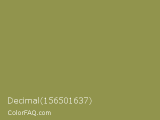 Decimal 156501637 Color is a normal yellow color and the nearest color is Moss Green #8a9a5b. Hex code #91944d and RGB value is rgb(145,148,77). In RGB color space, this color is composed of 57% red, 58% green, 30% blue, In CMYK color space, this color is composed of 2% cyan, 0% magenta, 48% yellow , 42% black , In HSL color space, this color has a hue angle of 63° , 32% saturation and 44% lightness.