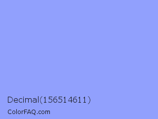 Decimal 156514611 Color is a light blue color and the nearest color is Portage #8b9fee. Hex code #91a0fd and RGB value is rgb(145,160,253). In RGB color space, this color is composed of 57% red, 63% green, 99% blue, In CMYK color space, this color is composed of 43% cyan, 37% magenta, 0% yellow , 1% black , In HSL color space, this color has a hue angle of 232° , 96% saturation and 78% lightness.