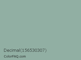 Decimal 156530307 Color is a light green color and the nearest color is Cascade #8ba9a5. Hex code #91afa3 and RGB value is rgb(145,175,163). In RGB color space, this color is composed of 57% red, 69% green, 64% blue, In CMYK color space, this color is composed of 17% cyan, 0% magenta, 7% yellow , 31% black , In HSL color space, this color has a hue angle of 156° , 16% saturation and 63% lightness.