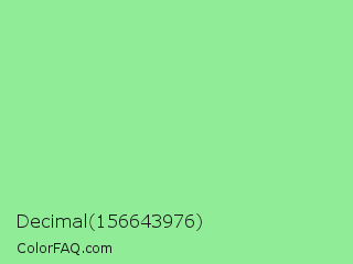 Decimal 156643976 Color is a light green color and the nearest color is Light Green #90ee90. Hex code #91ec98 and RGB value is rgb(145,236,152). In RGB color space, this color is composed of 57% red, 93% green, 60% blue, In CMYK color space, this color is composed of 39% cyan, 0% magenta, 36% yellow , 7% black , In HSL color space, this color has a hue angle of 125° , 71% saturation and 75% lightness.