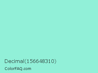 Decimal 156648310 Color is a light cyan color and the nearest color is Riptide #8be6d8. Hex code #91f0d8 and RGB value is rgb(145,240,216). In RGB color space, this color is composed of 57% red, 94% green, 85% blue, In CMYK color space, this color is composed of 40% cyan, 0% magenta, 10% yellow , 6% black , In HSL color space, this color has a hue angle of 165° , 76% saturation and 75% lightness.