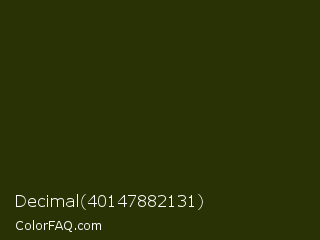 Decimal 40147882131 Color is a very dark lime color and the nearest color is Turtle Green #2a380b. Hex code #293205 and RGB value is rgb(41,50,5). In RGB color space, this color is composed of 16% red, 20% green, 2% blue, In CMYK color space, this color is composed of 18% cyan, 0% magenta, 90% yellow , 80% black , In HSL color space, this color has a hue angle of 72° , 82% saturation and 11% lightness.