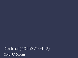 Decimal 40153719412 Color is a dark blue color and the nearest color is Martinique #363050. Hex code #323752 and RGB value is rgb(50,55,82). In RGB color space, this color is composed of 20% red, 22% green, 32% blue, In CMYK color space, this color is composed of 39% cyan, 33% magenta, 0% yellow , 68% black , In HSL color space, this color has a hue angle of 231° , 24% saturation and 26% lightness.