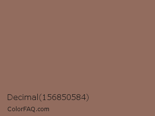 Decimal 156850584 Color is a normal orange color and the nearest color is Beaver Crayola #926f5b. Hex code #926c5e and RGB value is rgb(146,108,94). In RGB color space, this color is composed of 57% red, 42% green, 37% blue, In CMYK color space, this color is composed of 0% cyan, 26% magenta, 36% yellow , 43% black , In HSL color space, this color has a hue angle of 16° , 22% saturation and 47% lightness.