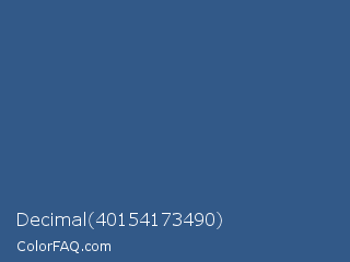 Decimal 40154173490 Color is a normal blue color and the nearest color is Chambray #354e8c. Hex code #325988 and RGB value is rgb(50,89,136). In RGB color space, this color is composed of 20% red, 35% green, 53% blue, In CMYK color space, this color is composed of 63% cyan, 35% magenta, 0% yellow , 47% black , In HSL color space, this color has a hue angle of 213° , 46% saturation and 36% lightness.