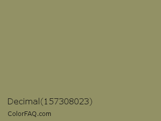 Decimal 157308023 Color is a normal yellow color and the nearest color is Avocado Pulp #888d65. Hex code #929165 and RGB value is rgb(146,145,101). In RGB color space, this color is composed of 57% red, 57% green, 40% blue, In CMYK color space, this color is composed of 0% cyan, 1% magenta, 31% yellow , 43% black , In HSL color space, this color has a hue angle of 59° , 18% saturation and 48% lightness.