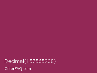 Decimal 157565208 Color is a normal rose color and the nearest color is Dark Raspberry #872657. Hex code #932856 and RGB value is rgb(147,40,86). In RGB color space, this color is composed of 58% red, 16% green, 34% blue, In CMYK color space, this color is composed of 0% cyan, 73% magenta, 41% yellow , 42% black , In HSL color space, this color has a hue angle of 334° , 57% saturation and 37% lightness.