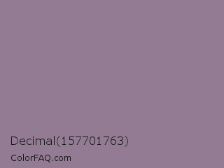 Decimal 157701763 Color is a normal magenta color and the nearest color is Mamba #8e8190. Hex code #937c93 and RGB value is rgb(147,124,147). In RGB color space, this color is composed of 58% red, 49% green, 58% blue, In CMYK color space, this color is composed of 0% cyan, 16% magenta, 0% yellow , 42% black , In HSL color space, this color has a hue angle of 300° , 10% saturation and 53% lightness.