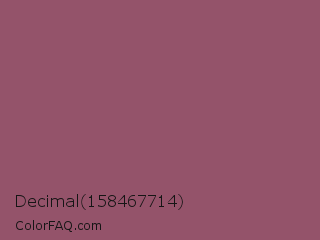 Decimal 158467714 Color is a normal rose color and the nearest color is Sugar Plum #914e75. Hex code #94536a and RGB value is rgb(148,83,106). In RGB color space, this color is composed of 58% red, 33% green, 42% blue, In CMYK color space, this color is composed of 0% cyan, 44% magenta, 28% yellow , 42% black , In HSL color space, this color has a hue angle of 339° , 28% saturation and 45% lightness.