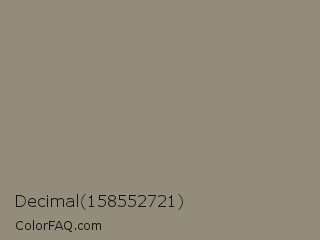 Decimal 158552721 Color is a normal orange color and the nearest color is Pale Oyster #988d77. Hex code #948c7b and RGB value is rgb(148,140,123). In RGB color space, this color is composed of 58% red, 55% green, 48% blue, In CMYK color space, this color is composed of 0% cyan, 5% magenta, 17% yellow , 42% black , In HSL color space, this color has a hue angle of 41° , 10% saturation and 53% lightness.
