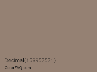 Decimal 158957571 Color is a normal orange color and the nearest color is Stonewall #928573. Hex code #958173 and RGB value is rgb(149,129,115). In RGB color space, this color is composed of 58% red, 51% green, 45% blue, In CMYK color space, this color is composed of 0% cyan, 13% magenta, 23% yellow , 42% black , In HSL color space, this color has a hue angle of 25° , 14% saturation and 52% lightness.