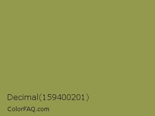 Decimal 159400201 Color is a normal yellow color and the nearest color is Moss Green #8a9a5b. Hex code #95994d and RGB value is rgb(149,153,77). In RGB color space, this color is composed of 58% red, 60% green, 30% blue, In CMYK color space, this color is composed of 3% cyan, 0% magenta, 50% yellow , 40% black , In HSL color space, this color has a hue angle of 63° , 33% saturation and 45% lightness.