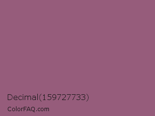 Decimal 159727733 Color is a normal rose color and the nearest color is Antique Fuchsia #915c83. Hex code #965c7b and RGB value is rgb(150,92,123). In RGB color space, this color is composed of 59% red, 36% green, 48% blue, In CMYK color space, this color is composed of 0% cyan, 39% magenta, 18% yellow , 41% black , In HSL color space, this color has a hue angle of 328° , 24% saturation and 47% lightness.