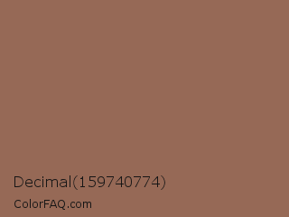 Decimal 159740774 Color is a normal orange color and the nearest color is Leather #967059. Hex code #966956 and RGB value is rgb(150,105,86). In RGB color space, this color is composed of 59% red, 41% green, 34% blue, In CMYK color space, this color is composed of 0% cyan, 30% magenta, 43% yellow , 41% black , In HSL color space, this color has a hue angle of 18° , 27% saturation and 46% lightness.