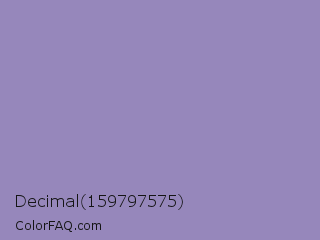 Decimal 159797575 Color is a light indigo color and the nearest color is Lavender Purple #967bb6. Hex code #9687bb and RGB value is rgb(150,135,187). In RGB color space, this color is composed of 59% red, 53% green, 73% blue, In CMYK color space, this color is composed of 20% cyan, 28% magenta, 0% yellow , 27% black , In HSL color space, this color has a hue angle of 257° , 28% saturation and 63% lightness.