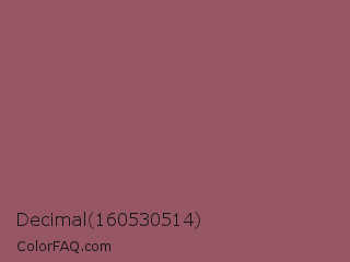 Decimal 160530514 Color is a normal red color and the nearest color is Rose Taupe #905d5d. Hex code #975664 and RGB value is rgb(151,86,100). In RGB color space, this color is composed of 59% red, 34% green, 39% blue, In CMYK color space, this color is composed of 0% cyan, 43% magenta, 34% yellow , 41% black , In HSL color space, this color has a hue angle of 347° , 27% saturation and 46% lightness.