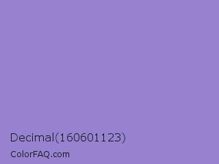 Decimal 160601123 Color is a light indigo color and the nearest color is Lilac Bush #9874d3. Hex code #9782cf and RGB value is rgb(151,130,207). In RGB color space, this color is composed of 59% red, 51% green, 81% blue, In CMYK color space, this color is composed of 27% cyan, 37% magenta, 0% yellow , 19% black , In HSL color space, this color has a hue angle of 256° , 45% saturation and 66% lightness.