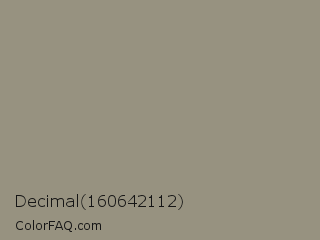 Decimal 160642112 Color is a normal yellow color and the nearest color is Gurkha #9a9577. Hex code #979280 and RGB value is rgb(151,146,128). In RGB color space, this color is composed of 59% red, 57% green, 50% blue, In CMYK color space, this color is composed of 0% cyan, 3% magenta, 15% yellow , 41% black , In HSL color space, this color has a hue angle of 47° , 10% saturation and 55% lightness.