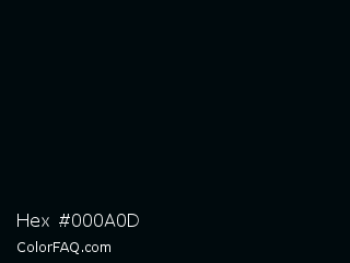 Hex #000a0d Color is a almost black blue color and the nearest color is Rich Black FOGRA29 #010b13. Hex code #000a0d and RGB value is rgb(0,10,13). In RGB color space, this color is composed of 0% red, 4% green, 5% blue, In CMYK color space, this color is composed of 100% cyan, 23% magenta, 0% yellow , 95% black , In HSL color space, this color has a hue angle of 194° , 100% saturation and 3% lightness.