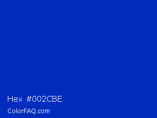 Hex #002cbe Color is a normal blue color and the nearest color is UA Blue #0033aa. Hex code #002cbe and RGB value is rgb(0,44,190). In RGB color space, this color is composed of 0% red, 17% green, 75% blue, In CMYK color space, this color is composed of 100% cyan, 77% magenta, 0% yellow , 25% black , In HSL color space, this color has a hue angle of 226° , 100% saturation and 37% lightness.