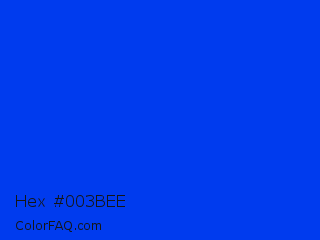 Hex #003bee Color is a normal blue color and the nearest color is Blue RYB #0247fe. Hex code #003bee and RGB value is rgb(0,59,238). In RGB color space, this color is composed of 0% red, 23% green, 93% blue, In CMYK color space, this color is composed of 100% cyan, 75% magenta, 0% yellow , 7% black , In HSL color space, this color has a hue angle of 225° , 100% saturation and 47% lightness.