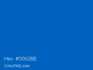 Hex #0062be Color is a normal blue color and the nearest color is Science Blue #0066cc. Hex code #0062be and RGB value is rgb(0,98,190). In RGB color space, this color is composed of 0% red, 38% green, 75% blue, In CMYK color space, this color is composed of 100% cyan, 48% magenta, 0% yellow , 25% black , In HSL color space, this color has a hue angle of 209° , 100% saturation and 37% lightness.