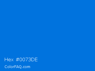 Hex #0073de Color is a normal blue color and the nearest color is True Blue #0073cf. Hex code #0073de and RGB value is rgb(0,115,222). In RGB color space, this color is composed of 0% red, 45% green, 87% blue, In CMYK color space, this color is composed of 100% cyan, 48% magenta, 0% yellow , 13% black , In HSL color space, this color has a hue angle of 209° , 100% saturation and 44% lightness.